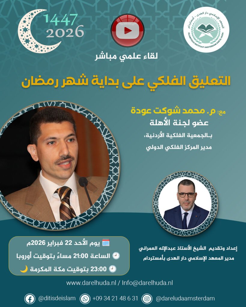 المعهد الإسلامي دار الهدى يعلن عن تنظيم لقاء علمي مباشر عبر قناته الرسمية على منصة YouTube، وذلك في إطار جهوده الرامية إلى تنوير المسلمين بالقضايا الشرعية والفلكية المرتبطة بمواقيت العبادات، وعلى رأسها مسألة ثبوت هلال شهر رمضان المبارك.